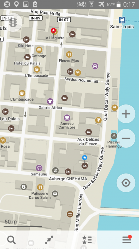 夜には出歩くのもダメけど宿が近いので。(サン=ルイ島はヨーロッパ人観光客も多く比較的治安はいいとされているけれど、人通りがあまり無い場所も多いので、夜の女性1人歩きはあまりお勧めしない)