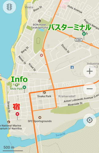 スワコプムントでは天気も悪く風も強いせいか非常に寒かったので、テント泊ではなく、ちゃんとゲストハウス(部屋)に泊まろうと決めた。(後で知ったのはスワコプムントは常に気候が涼しい場所らしい)