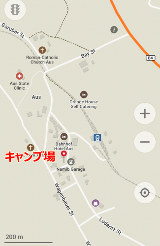 最終目的地は「Luderitz(リューデリッツ)」という場所だけど、オフロードのため1日でそこまで行けなさそうなので、途中の「Aus(アウス)」という町を目指すことに。